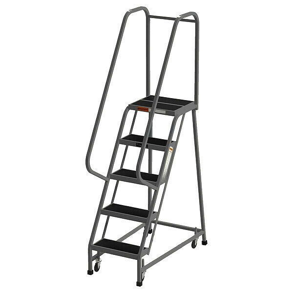 80 in H Steel Rolling Ladder, 5 Steps, 450 lb Load CapacitySKU G4062563Categories Material HandlingDescription Rolling Ladder, Material Steel, Platform Height 50 in, Handrails Included Yes, Handrail Height 30 in, Overall Height 80 in, Number of Steps 5, Assembled, Load Capacity 450 lb, Step Tread Antislip Vinyl, Platform Depth 14 in, Platform Width 17 in, Bottom Width 23 in, Base Depth 42 in, Climbing Angle 60 Degrees , Step Depth 7 in, Step Width 17 in, Ladder Actuation Weight Activated Step Lock, Finish Painted, Color Gray, Standards OSHA, Rear Exit NograingerSKU: 8PEA5, mscSKU: , zoro_no: G4062563, mongo_id: 65bbea1f22d7a989a9997b7d