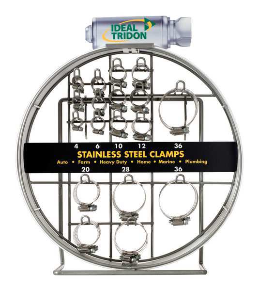 SKU G6167646Categories Automotive toolsDescription Hose Clamp Assortment, Band Material Stainless Steel, Band Material Grade 201, Container Type Display Rack, Hose Clamp Type Worm Gear, Includes (30) Clamp Size No. 20, (30) Clamp Size No. 28, (30) Clamp Size No. 36, (40) Clamp Size No. 10, (40) Clamp Size No. 12, (40) Clamp Size No. 4, (40) Clamp Size No. 6, Display Rack, Largest Clamping Diameter in Set 2 3/4 in, 70 mm, Number of Clamps 250, Number of Sizes 7, SAE Numbers Included 10, 12, 20, 28, 36, 4, 6$366.74 / eachWeb price