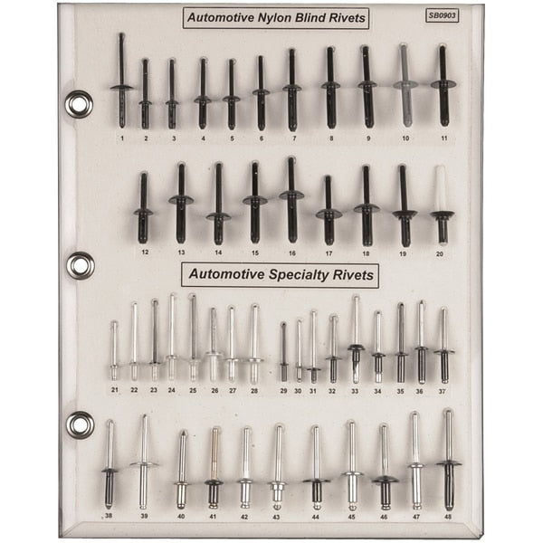 Automotive Rivet Sample Board Hole/Flange SizeSKU G3680119Categories Automotive toolsDescription Automotive Rivet Sample Board Hole/Flang$60.94 / eachWeb price