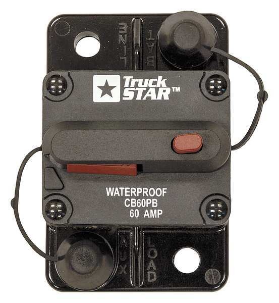 Automotive Circuit Breaker, CB, 60A, 12VDCSKU G6206033Categories Automotive toolsDescription Automotive Circuit Breaker, Mount Type Bolt On, Mount Style Surface, Current Rating 60 A, Voltage Rating 42V DC, Interrupt Rating 60 A at 42V DC, Terminal Connection Stud, Actuator Push-to-Trip, Circuit Breaker Type Hi-Amp Circuit Breaker, Compatible Product Type Auxiliary and Accessory Circuits, Compatible Vehicle Type Dump Trucks, Snow Plows, Trucks, Housing Material Plastic, Overall Depth 2 7/8 in, Overall Width 1 7/8 in, Reset Type Manual, Series CBgraingerSKU: 30PD15, mscSKU: , zoro_no: G6206033, mongo_id: 65bbe7ee22d7a989a98ca9b9