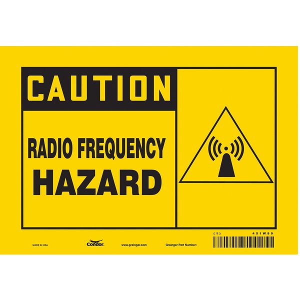 Safety Sign Radiofrequency/Microwave, 10 in H, 7 in W, Polyethylene, Horizontal Rectangle, 451Y04