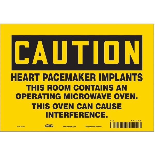 SKU G5880003Categories Radio , SafetyDescription Safety Sign, Vertical Rectangle, Number of Printed Sides 1, English, Sign Format Traditional OSHA, Sign Legend Heart Pacemaker Implants This Room Contains An Operating Microwave Oven This Oven Can Cause Interference, Sign Legend Background Color Yellow, Sign Legend Style TextgraingerSKU: 451X19, mscSKU: , zoro_no: G5880003, mongo_id: 65bbe9ad22d7a989a996f2b9