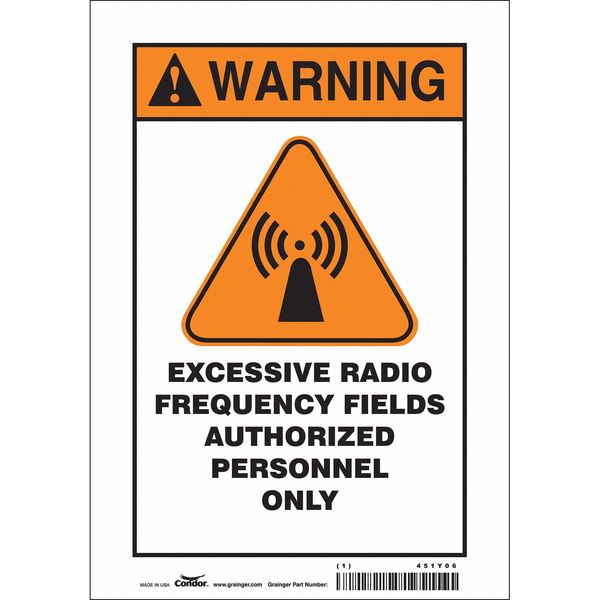 Safety Sign, 14 in Height, 10 in Width, Polyethylene, Vertical Rectangle, English, 451Y05SKU G5845152Categories Radio , SafetyDescription Safety Sign, Vertical Rectangle, Number of Printed Sides 1, English, Sign Format ANSI/OSHA Format, Sign Legend Excessive Radio Frequency Fields Authorized Personnel Only, Sign Legend Background Color White, Sign Legend Style Symbol and TextgraingerSKU: 451Y05, mscSKU: , zoro_no: G5845152, mongo_id: 65bbe85622d7a989a98edee5