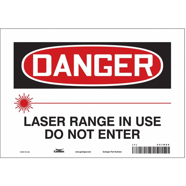 Safety Sign, 10 in Height, 14 in Width, Vinyl, Horizontal Rectangle, English, 451R97SKU G5230948Categories SafetyDescription Safety Sign, Horizontal Rectangle, Number of Printed Sides 1, English, Sign Format Traditional OSHA, Sign Legend Laser Range In Use Do Not Enter, Sign Legend Background Color White, Sign Legend Style Symbol and TextgraingerSKU: 451R97, mscSKU: , zoro_no: G5230948, mongo_id: 65bbe8339a749db82277bb74