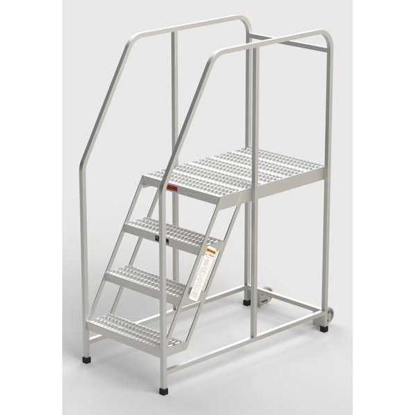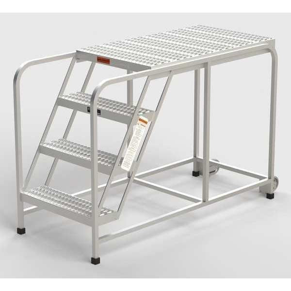 SKU G2122191Categories Antislip Tapes, Treads & Stair NosingsDescription Single Access Rolling Platform, Material Aluminum, Platform Style Single Access, Platform Height 40 in, Load Capacity 300 lb, Base Depth 66 in, Bottom Width 27 in, Platform Depth 42 in, Platform Width 24 in, Overall Height 3 ft 4 in, Number of Legs 4, Number of Steps 4, Step Width 24 in, Step Depth 7 in, Climbing Angle 60 Degrees , Step Tread Serrated, Color Silver, Finish Mill, Standards OSHA, Handrails Included No, Ladder Actuation Tilt and Roll$1,853.36 / eachWeb price