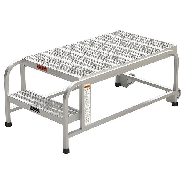 Aluminum Mobile Work Platform, 2 Steps, No Handrails, 48"D Platform, Solid Ribbed Tread
